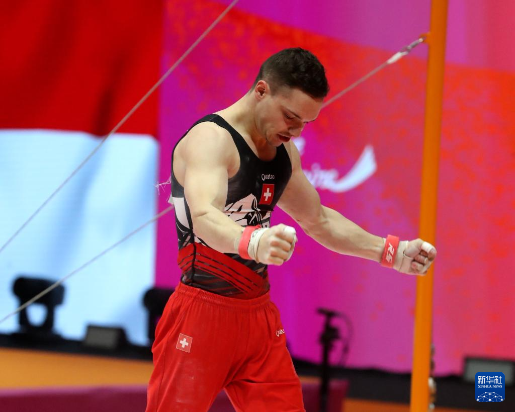10月22日,瑞士选手塞菲尔特在男子个人全能决赛单杠项目比赛中。