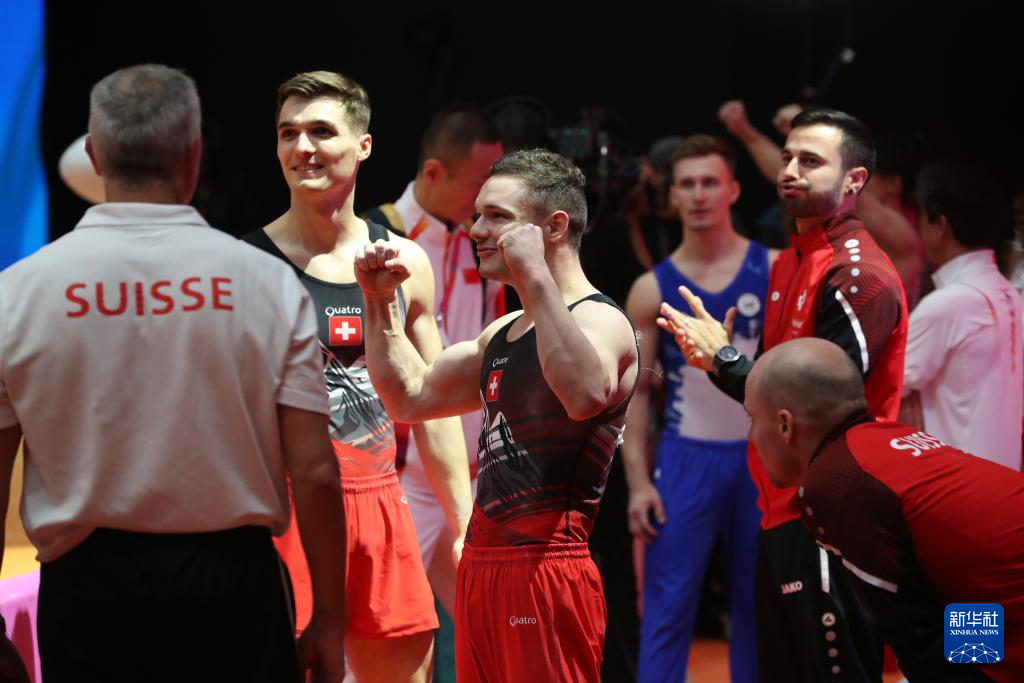 10月22日,瑞士选手塞菲尔特在男子个人全能决赛单杠项目比赛后。