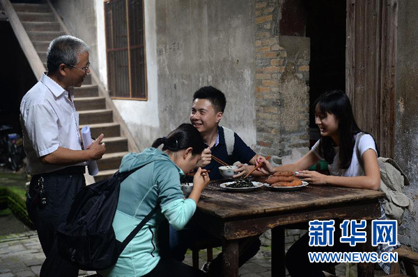 在江西于都縣劉次垣民居內,三位主播在體驗“吃紅軍飯”(9月16日攝)。 10月13日起,新華社為紀念紅軍長征勝利80周年推出的系列網絡直播《紅色追尋——三個年輕人的長征路》精編版視頻將在全國各主要新媒體發布端和民航、鐵路、公交、戶外大屏等發布平臺上線。新華社記者 萬象 攝