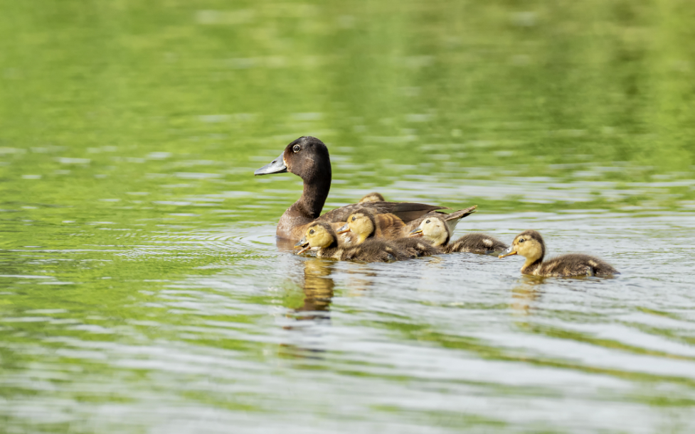 青头潜鸭育雏 牛郢生摄(国家林草局供图)