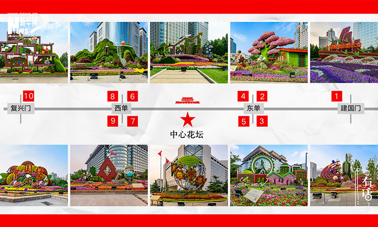 長安街沿線,從建國門到復興門,布置了10組立體花壇,體現決勝全面小康,共襄復興偉業的壯闊藍圖。