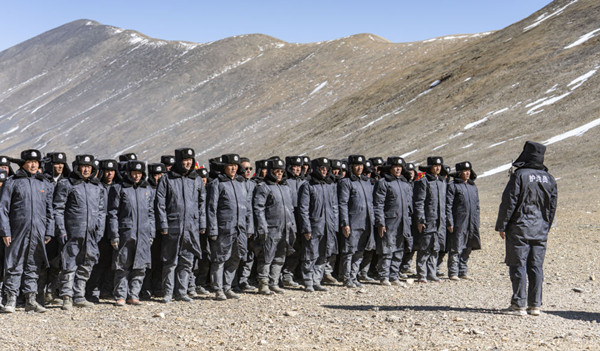 如今,原邊防武警部隊已轉為人民警察編制,巡邏隊員們配發了與“平安藍”相稱的隊服,隊伍中也多了不少年輕面孔。23歲的旦增石塔兩年前才入隊。在訓練中,他按軍姿的要求站在隊伍末尾,手指尖繃得筆直。