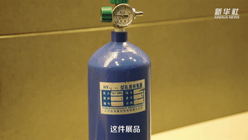 一個(gè)氧氣瓶靜靜地躺在展柜