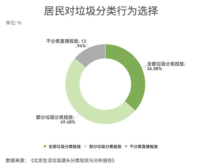 ??? 對(duì)于目前如何處理生活垃圾的問(wèn)題,調(diào)查結(jié)果表明36.58%的居民能做到每次都將全部垃圾分類(lèi)投放,49.48%的居民偶爾分類(lèi)處理或者僅對(duì)部分垃圾分類(lèi)投放,而13.94%的居民不分類(lèi)直接投放。