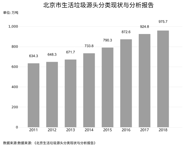 ??? 根據(jù)生態(tài)環(huán)境部發(fā)布的 《全國(guó)大、中城市固體廢物污染環(huán)境防治年報(bào)》, 2017年北京市處于大、中城市中生活垃圾產(chǎn)生量的第一位, 2018年則僅次于上海市處于第二位。