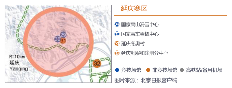 ??? 核心區(qū)位于山頂海拔2199米的小海坨山, 山的南麓將建設(shè)國家高山滑雪中心、國家雪車雪橇中心兩個競賽場館和延慶冬奧村、延慶山地新聞中心兩個非競賽場館。