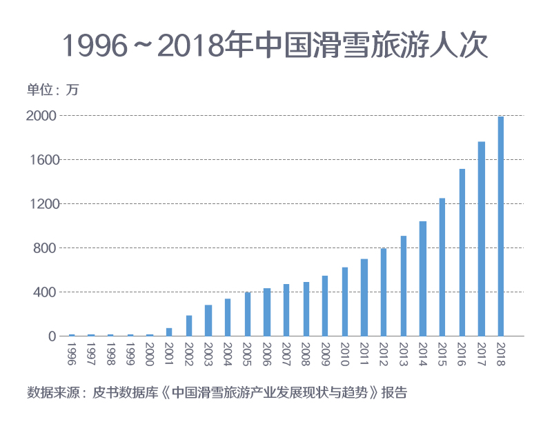 ??? 從1996年發(fā)展至今, 我國滑雪旅游人次實現(xiàn)了質(zhì)的飛躍。截至2018年底, 我國滑雪人次為1970萬, 同比增長12.57%。基于龐大的滑雪人次和市場規(guī)模,中國已被認(rèn)為是全球主要滑雪市場之一,年滑雪人次已超過一些擁有成熟滑雪市場的國家。