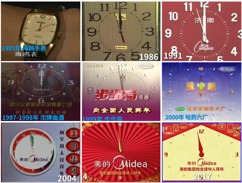 在2011年之前,歷年春晚不乏形式多樣的廣告,比如“企業(yè)賀電廣告”、片尾鳴謝字幕廣告、冠名廣告和報(bào)時(shí)廣告等。其中報(bào)時(shí)廣告最受矚目,報(bào)時(shí)廣告一般出現(xiàn)在春晚開(kāi)播的時(shí)候以及零點(diǎn)倒計(jì)時(shí),畢竟在那時(shí),所有的觀眾都盯著鐘表上的秒針一點(diǎn)一點(diǎn)朝著“12”這個(gè)數(shù)字走去,這個(gè)露出絕無(wú)僅有。