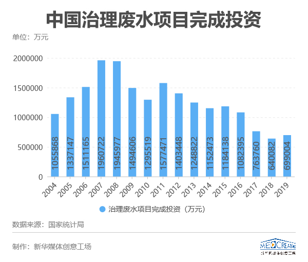 ??? 增效減排是解決水危機(jī)更為直接有效的手段。提高農(nóng)業(yè)效率,加快灌區(qū)續(xù)建配套和現(xiàn)代化改造,分區(qū)域規(guī)模化推進(jìn)高效節(jié)水灌溉,并根據(jù)水資源條件,推進(jìn)適水種植、量水生產(chǎn),讓每一滴水發(fā)揮更大價(jià)值。同時(shí)大力推進(jìn)工業(yè)節(jié)水改造,實(shí)施節(jié)水管理和改造升級(jí),積極推行綠色高質(zhì)量轉(zhuǎn)型升級(jí)和循環(huán)化改造,從根本解決水質(zhì)性缺水問(wèn)題。根據(jù)國(guó)家統(tǒng)計(jì)局?jǐn)?shù)據(jù)顯示,2019年我國(guó)治理廢水項(xiàng)目完成投資為699004萬(wàn)元,且呈逐年下降趨勢(shì)。廢水治理投入資金的減少,說(shuō)明已排放或造成污染的的廢水污水得到治理,現(xiàn)階段廢水排放量也逐年下降,標(biāo)志著我國(guó)在環(huán)境污染治理方面已經(jīng)取得初步成果。