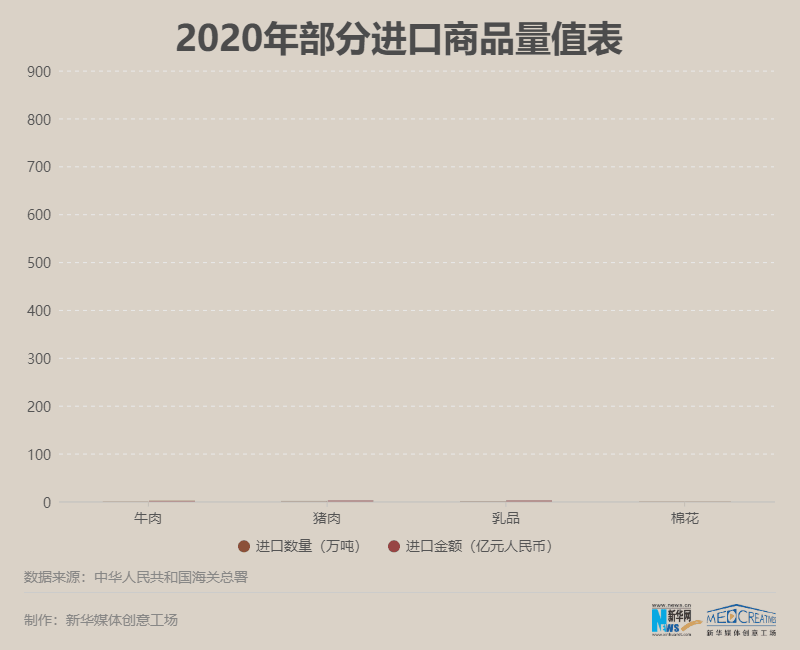 中華人民共和國海關總署公布的相關數據顯示,2020年全年消費品進口額1.57萬億元,同比增長8.2%。其中,2020年全年豬肉累計進口439萬噸,同比增長108.3%,進口額達834.9億元人民幣;牛肉累計進口212萬噸,進口額達到706.0億元人民幣,同比增長27.7%;啤酒累計進口58423萬升,(倘若以500ML一瓶換算)相當于全年進口11.68億瓶啤酒。