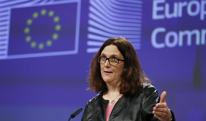 歐盟貿易委員塞西莉亞·馬爾姆斯特倫18日說,美國加征鋼鋁關稅舉措正在扭曲全球貿易并可能破壞世界經濟增長前景,是“純粹的保護主義”行為。