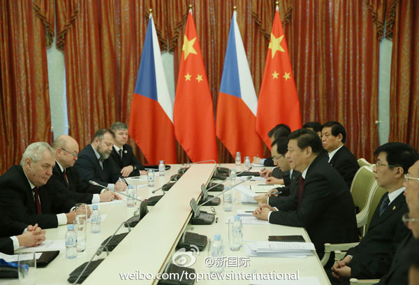 ????新華網(wǎng)北京2月7日電 據(jù)新華社“新國際”微博報(bào)道,習(xí)近平7日在索契會(huì)見捷克總統(tǒng)澤曼時(shí)說,今年是中捷建交65周年,捷克也剛組建新政府。雙方要以此為新的良好開端,就兩國關(guān)系指導(dǎo)原則和發(fā)展方向達(dá)成新共識(shí)。中方重視捷克在歐盟內(nèi)發(fā)揮的獨(dú)特作用,贊賞捷克積極致力于促進(jìn)中東歐國家同中國的合作。