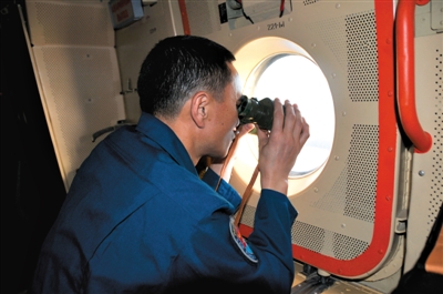24日,中國空軍機組人員在任務(wù)海域搜索。 新華社發(fā)