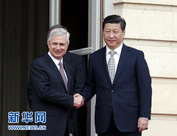 ????習近平表示,在中法建交50周年之際,我和奧朗德總統共同決定開創緊密持久的中法全面戰略伙伴關系新時代。中法關系站在新的歷史起點上,前景更加廣闊。雙方要以剛剛發表的中法聯合聲明為指引,筑牢政治、經濟、人文三大支柱,推動中法關系取得新的更大發展。
