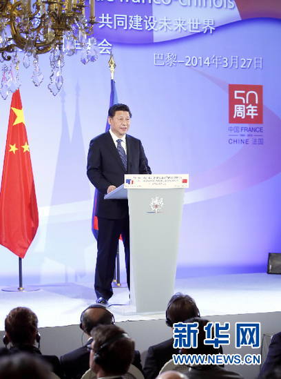 ??? 3月27日,國家主席習(xí)近平在巴黎出席中法建交50周年紀(jì)念大會(huì)并發(fā)表重要講話。 新華社記者 鞠鵬 攝