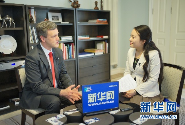 比利時(shí)王國駐華大使馬懷宇接受新華網(wǎng)專訪。新華網(wǎng)記者郭小天攝