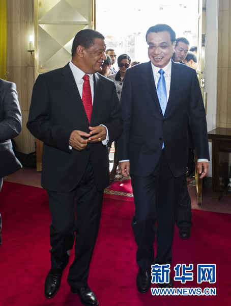 5月6日,中國國務(wù)院總理李克強在亞的斯亞貝巴國家宮會見埃塞俄比亞總統(tǒng)穆拉圖。 新華社記者王曄攝