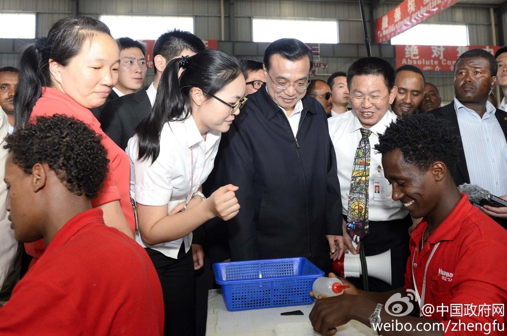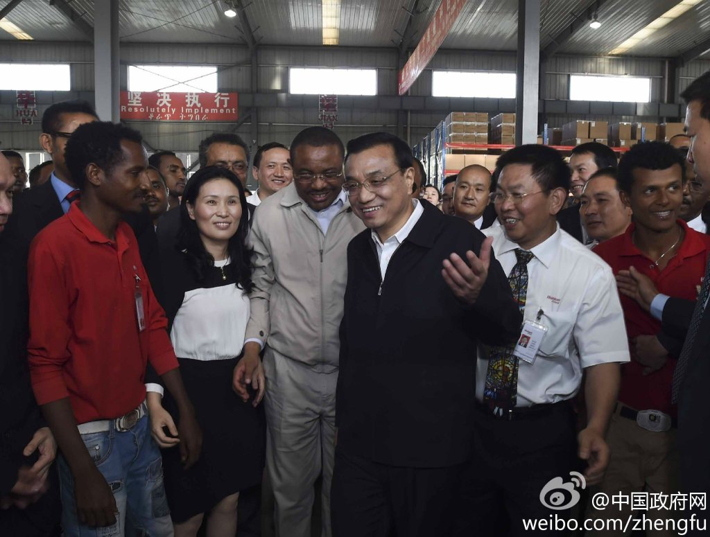 新華網(wǎng)北京5月6日電 據(jù)中國政府網(wǎng)微博報道,5日下午,李克強在埃塞總理陪同下參觀東方工業(yè)園。該園由中方投資興建,目前已為當(dāng)?shù)靥峁?000余個就業(yè)崗位。李克強說,中國愿意把可轉(zhuǎn)移的勞動密集型產(chǎn)業(yè)優(yōu)先轉(zhuǎn)移到非洲,帶動當(dāng)?shù)鼐蜆I(yè),促進發(fā)展,增強非洲自我發(fā)展能力,造福雙方人民。