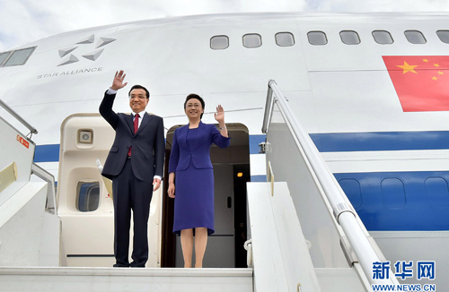 ??? 5月6日,中國國務院總理李克強在圓滿結束對埃塞俄比亞和非盟總部的正式訪問后離開亞的斯亞貝巴。埃塞俄比亞總理海爾馬里亞姆夫婦在機場為李克強夫婦舉行隆重的歡送儀式。這是李克強總理和夫人程虹向送行人群揮手告別。新華社記者 李濤 攝