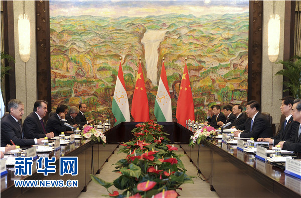 ????習近平表示,中方始終視塔吉克斯坦為好鄰居、好朋友、好伙伴,支持塔吉克斯坦維護國家穩定、促進經濟發展、提高人民生活水平。去年中塔建立戰略伙伴關系以來,兩國關系發展進入新階段,各領域合作勢頭很好。雙方要加緊制定《中塔2015-2020年戰略伙伴關系合作綱要》,如期推進中國-中亞天然氣管道工程以及塔方輸變電線路改造、交通和邊境口岸基礎設施建設、工業園、農業技術示范園區等合作項目,促進文化、教育、旅游合作,加強執法安全和防務合作,共同打擊“三股勢力”、販毒和跨國犯罪。中方全力支持和配合塔方辦好今年9月舉行的上海合作組織杜尚別峰會,推動本組織向團結更緊密、合作更務實、行動更有效的方向發展。