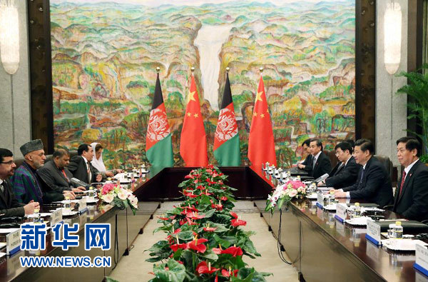 ????卡爾扎伊表示,阿中兩國(guó)有著兄弟般深厚的友誼,中國(guó)是阿富汗信賴的好鄰居。阿方感謝中方給予阿富汗和平重建的寶貴支持。無(wú)論阿富汗大選結(jié)果如何,阿方?jīng)Q心同中方發(fā)展親密的睦鄰友好關(guān)系,希望中方繼續(xù)幫助阿富汗實(shí)現(xiàn)穩(wěn)定、和解、發(fā)展,幫助阿富汗培訓(xùn)各類(lèi)人才。恐怖主義、跨國(guó)犯罪是阿中兩國(guó)共同的敵人,阿方愿同中方合力打擊。
