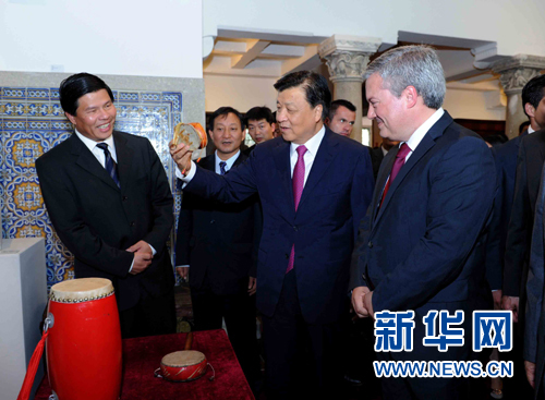 ??? 6月17日至19日,應葡萄牙政府邀請,中共中央政治局常委、中央書記處書記劉云山對葡萄牙進行正式訪問。這是6月19日,劉云山在波爾圖出席慶祝中國葡萄牙建交35周年中國文化周開幕式活動,參觀中葡文化展。 新華社記者 饒愛民 攝