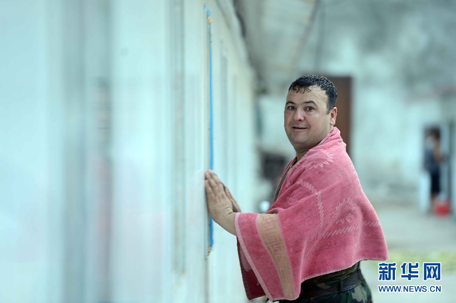 ????7月5日,烏茲別克斯坦安革連至琶布鐵路隧道項(xiàng)目安革連隧道進(jìn)口西口分部,一名烏茲別克員工下班后在生活區(qū)。(沙達(dá)提 攝)