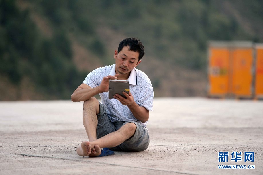 ????7月5日,烏茲別克斯坦安革連至琶布鐵路隧道項目安革連隧道進口西口分部,幾名員工在與家人通電話。(沙達提 攝)