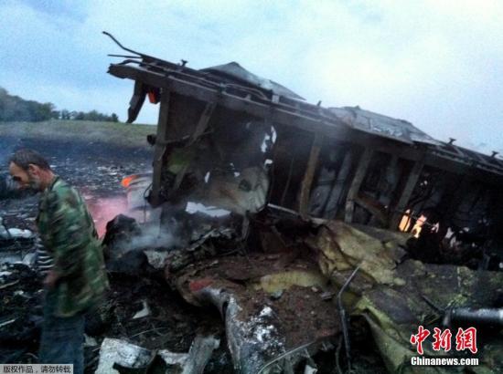7月17日,據(jù)路透社消息,馬來西亞一架載有295人的777客機(jī)在烏克蘭靠近俄羅斯邊界墜毀。另?yè)?jù)國(guó)際文傳電訊社消息,墜毀機(jī)型為一架波音777客機(jī),機(jī)載約280名乘客和15個(gè)機(jī)組人員。圖為馬航波音777客機(jī)在頓涅茨克地區(qū)墜毀的現(xiàn)場(chǎng)。