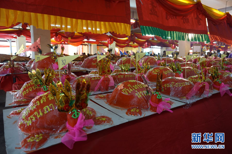 ????8月12日,泰國(guó)普吉府舉辦中國(guó)傳統(tǒng)的“中元普渡”活動(dòng),以普渡孤魂,表達(dá)仁愛(ài)和孝道思想。該活動(dòng)在普吉已有150多年的歷史,每逢中國(guó)農(nóng)歷7月,當(dāng)?shù)厝A人便會(huì)舉行祭祀儀式,用面粉和糖制成大小不一的紅色面團(tuán),裝飾成烏龜形狀,既表達(dá)了對(duì)于祖先的懷念,還傳遞了對(duì)于全家人健康長(zhǎng)壽的祝福。圖為活動(dòng)中用于祭祀的烏龜形狀糕點(diǎn)。新華網(wǎng)記者 楊云燕 攝
