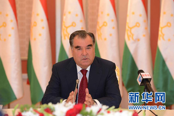 ????新華網杜尚別9月13日電(記者王峰 周良 沙達提)塔吉克斯坦總統拉赫蒙13日接受新華社等中國媒體聯合采訪時表示,習近平主席對塔吉克斯坦進行的首次國事訪問,為塔中關系全方位發展注入強大動力。