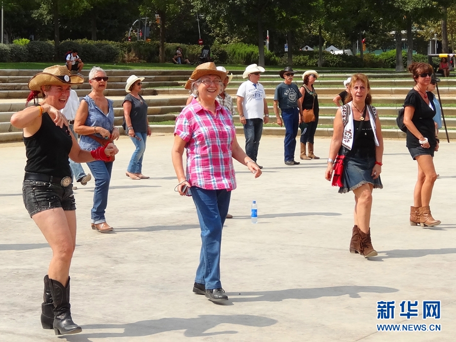 ??? 9月14日,一個陽光燦爛天氣晴朗的禮拜天上午,在西班牙巴塞羅那一處居民區的空地上,一群大叔大媽們歡快地組團跳舞。頭戴牛仔帽、身穿T恤仔褲、腳踏長筒靴,大叔大媽們顯得格外“有范兒”。