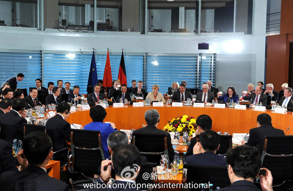 ????新華網北京10月10日電 據新華社“新國際”微博報道,“Happy Birthday!”在第三輪中德政府磋商會上,德國總理默克爾開場先向中方農業部長祝福生日!她說:雖然你不能和家人一起過,但我們會讓你過個愉快的生日。李克強總理提議大家舉水杯為這特別的生日送上祝福,還風趣地說祝福農業部長,意味著有保障糧食安全的基礎。