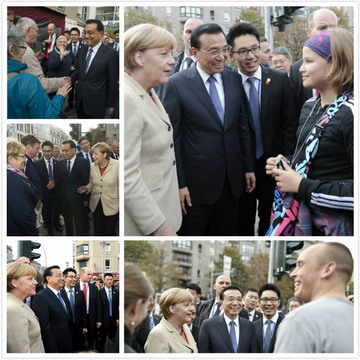 事件:李總理和默總理共同乘車前往出席中德經(jīng)濟技術論壇,途中他們臨時停車,與在街頭的德國民眾親切交流互動。