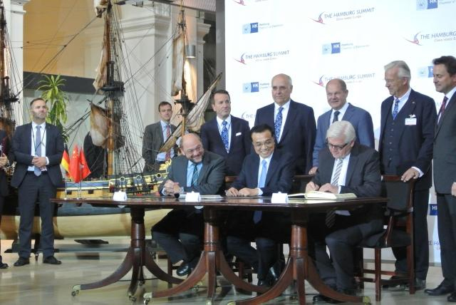 “我很贊賞漢堡峰會用了這樣一個主題——China meets Europe. 中國和歐洲相遇的結果是什么?是幸運。”克強總理說。