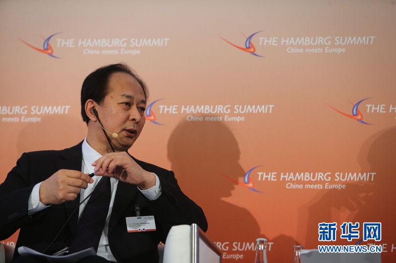??? 10月11日,在德國漢堡舉行的中歐論壇漢堡峰會上,鞍鋼集團公司總經理張曉剛博士發言。中歐論壇漢堡峰會第六屆會議11日在德國漢堡閉幕。本屆峰會以“中國與歐洲相遇”為主題。來自中歐政治、經濟和學術界的500多位代表聚集在一起,探討中歐經貿合作未來趨勢、中國經濟的綠色發展等重要議題。新華社記者張帆攝