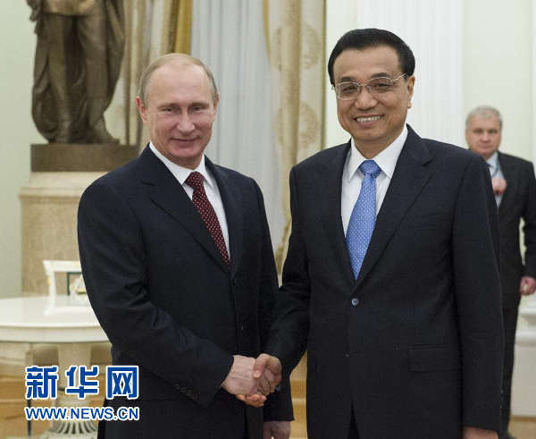????普京請李克強轉達他對習近平主席的親切問候。普京表示,我很高興看到俄中關系繼續(xù)快速發(fā)展。去年雖然全球經(jīng)濟不景氣,但兩國貿(mào)易額保持高速增長,已接近雙方確定的2015年達到1000億美元的目標。這些成績得益于兩國政府的共同努力。此次兩國總理定期會晤取得豐碩成果,雙方簽署了眾多合作文件。相信你此訪將為俄中各領域合作注入強勁的推動力。中國有句名言:“欲窮千里目,更上一層樓。”俄中關系要不斷攀升高水平,謀求新發(fā)展。