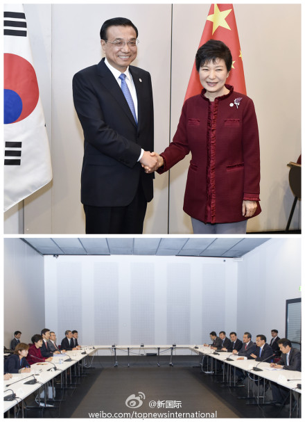 ??? 新華網(wǎng)北京10月17日電 據(jù)新華社“新國際”微博報道,李克強總理16日會見韓國總統(tǒng)樸槿惠時表示,推動貿(mào)易自由化、投資便利化,是應(yīng)對世界經(jīng)濟復(fù)蘇緩慢的一劑良藥。中方愿同韓方共同努力,早日建成全面、高水平、利益平衡的中韓自貿(mào)區(qū),加強在金融、新能源、高新技術(shù)等領(lǐng)域合作,推動兩國經(jīng)貿(mào)合作向更高水平邁進。