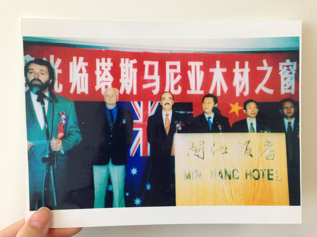 ????這是1999年習近平任福建省代省長時出席塔斯馬尼亞之窗木材交易會時的照片(左三為吉姆·培根州長),記錄下當年兩位“父母官”為地方經貿合作而出力的一幕。自我表揚一下,記者為尋到這張照片,可是很花了番功夫。