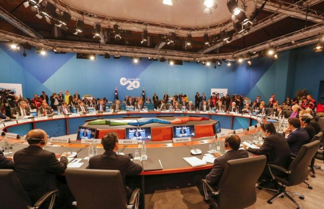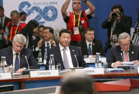 ????(圖為2014年11月15日,二十國集團領導人第九次峰會在澳大利亞布里斯班舉行。國家主席習近平出席會議并發(fā)表題為《推動創(chuàng)新發(fā)展 實現(xiàn)聯(lián)動增長》的重要講話。新華社發(fā))