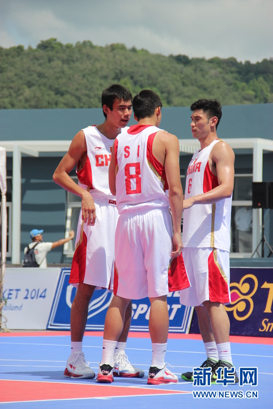 ??? 11月16日,中國沙灘籃球運(yùn)動員劉桂均(左)、司坤(中)、劉洺宇(右)在比賽中場。中國體育代表團(tuán)16日在泰國普吉舉行的第四屆亞洲沙灘運(yùn)動會上勇奪2枚金牌和2枚銅牌。當(dāng)天比賽全部結(jié)束時,中國隊(duì)以3金2銀5銅的成績暫列獎牌榜第五。新華社發(fā)(塔納攝)