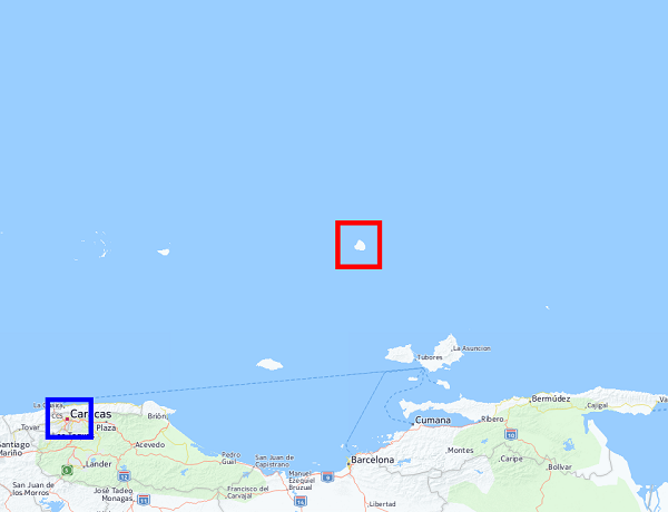 ????紅框里就是布蘭基亞(Isla La Blanquilla),藍(lán)框里是委內(nèi)瑞拉首都加拉加斯。夠遠(yuǎn)的吧?小島距離加拉加斯182公里,是著名的潛水勝地。島上覆蓋有白色沙灘,島名中的Blanquilla即來(lái)自此沙灘。岸上雖然沙灘一片雪白,但是海中卻滿(mǎn)布黑珊瑚。小島面積64.53平方公里,上面有仙人掌、鬣蜥、野驢和山羊。