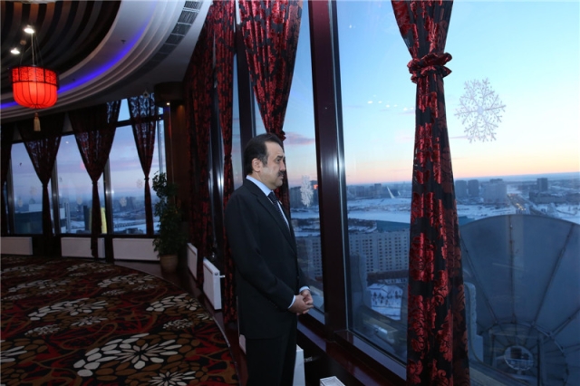 ????早餐后,兩位總理意猶未盡,又繞著圓形的餐廳極目遠眺。窗外,明媚的太陽正緩緩升起,給銀裝素裹的阿斯塔納鑲上一層淡淡的金色。克強總理將馬西莫夫總理送至酒店大堂,微笑著握手話別,繼續一天緊張的日程。