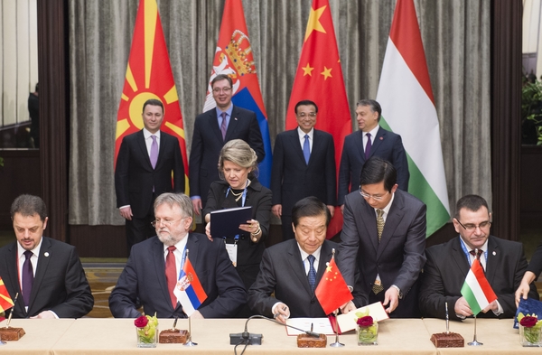 ????17日上午,中國、匈牙利、塞爾維亞、馬其頓四國總理共同見證了合作建設中歐陸??炀€北段匈塞鐵路的諒解備忘錄和通關便利化協議的簽署,為中歐陸海快線的建設奠定了重要基礎。