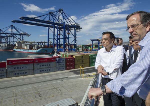 ?。?月20日,克強總理與希臘總理薩馬拉斯共同考察中國遠洋運輸集團比雷埃夫斯集裝箱碼頭,攝影記者:王曄 )