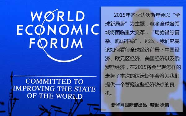 ????究竟該如何看待2015年的全球經(jīng)濟(jì)前景?全球經(jīng)濟(jì)到底面臨怎樣的風(fēng)險(xiǎn)和機(jī)遇?將于21日拉開(kāi)帷幕的世界經(jīng)濟(jì)論壇達(dá)沃斯年會(huì),為人們管窺全球經(jīng)濟(jì)脈動(dòng)提供了良機(jī)。從論壇主題以及已經(jīng)聚合的意見(jiàn)看,放寬觀察視野、勿忘積極因素、期待中國(guó)紅利,或許是本次達(dá)沃斯年會(huì)給人們帶來(lái)的啟示。