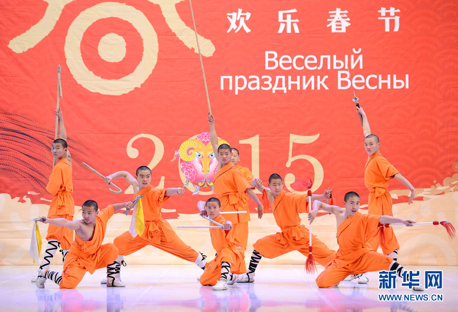 ????新華網(wǎng)塔什干2月6日電(記者 沙達提)2月4日晚,在烏茲別克斯坦首都塔什干突厥宮,藝術(shù)家在表演中國武術(shù)。由中國文化部、中國駐烏茲別克斯坦大使館、烏外交部、烏文化體育部和塔什干市政府共同聯(lián)辦、河南省文化廳攜鄭州歌舞劇院、登封市少林塔溝武術(shù)學校承辦的2015“歡樂春節(jié)”中亞行演出4日至5日在塔什干突厥宮分別為烏茲別克斯坦政府官員、各界友好人士、駐烏使節(jié)和旅烏各族華僑華人、維吾爾文化中心、東干文化中心及中資企業(yè)、教師和留學生代表近1600余人獻上充滿濃郁中國特色的文化藝術(shù)盛宴。