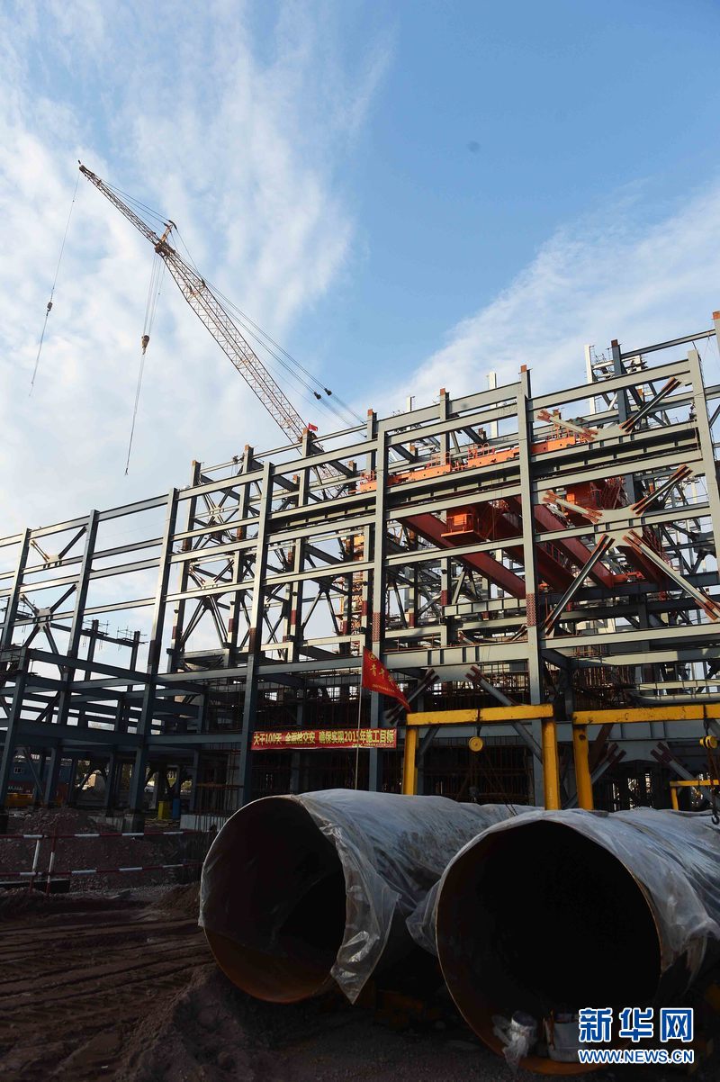 4月16日,烏茲別克斯坦安格連(市)電廠主廠房鋼結構施工現場。新華網發 記者沙達提 攝