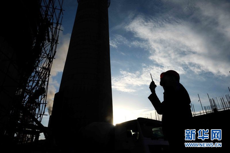 ????烏茲別克斯坦安格連(市)電廠煙囪施工現場,來自中國能建集團黑龍江省火電第一工程有限公司的工人在作業。新華網發 記者沙達提 攝