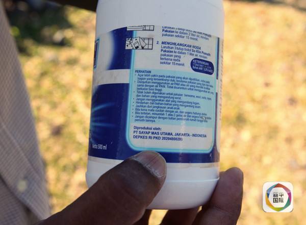 ????7月30日,人們在留尼汪海灘上發(fā)現(xiàn)的產(chǎn)自印度尼西亞雅加達的洗衣液。(圖片來源:法新社)